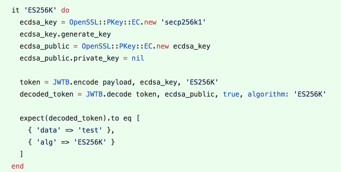 JWTs are JavaScript objects that are signed by a private key. The JWT standard specifies a couple different standard signature types. Unfortunately, the standard doesn't include ECDSA using secp256k1, the elliptic curve used by Bitcoin and most other cryptocurrencies, which is the the elliptic urve we use in Blockstack. This means we'll have to add support for this curve to a JWT library if the JWT library for our language doesn't already include it.