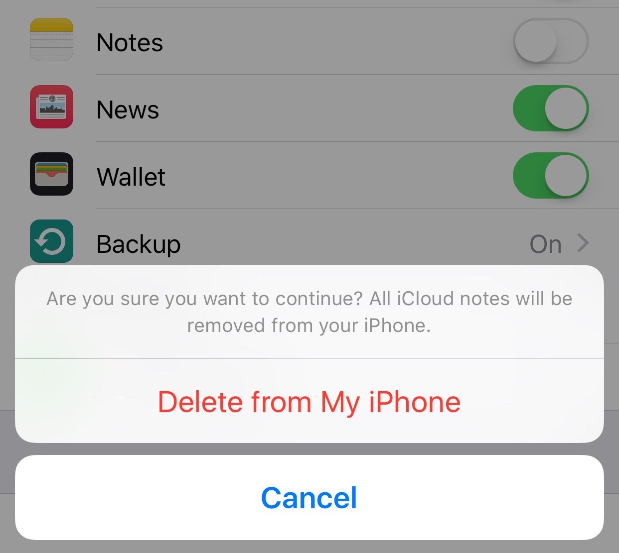 the app would no longer sync. Logging in and out of iCloud, toggling Notes, deleting